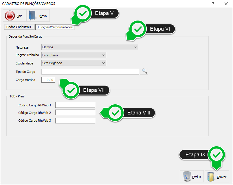Etapa VII - Insira o Tipo de Cargo e a Carga Horária.