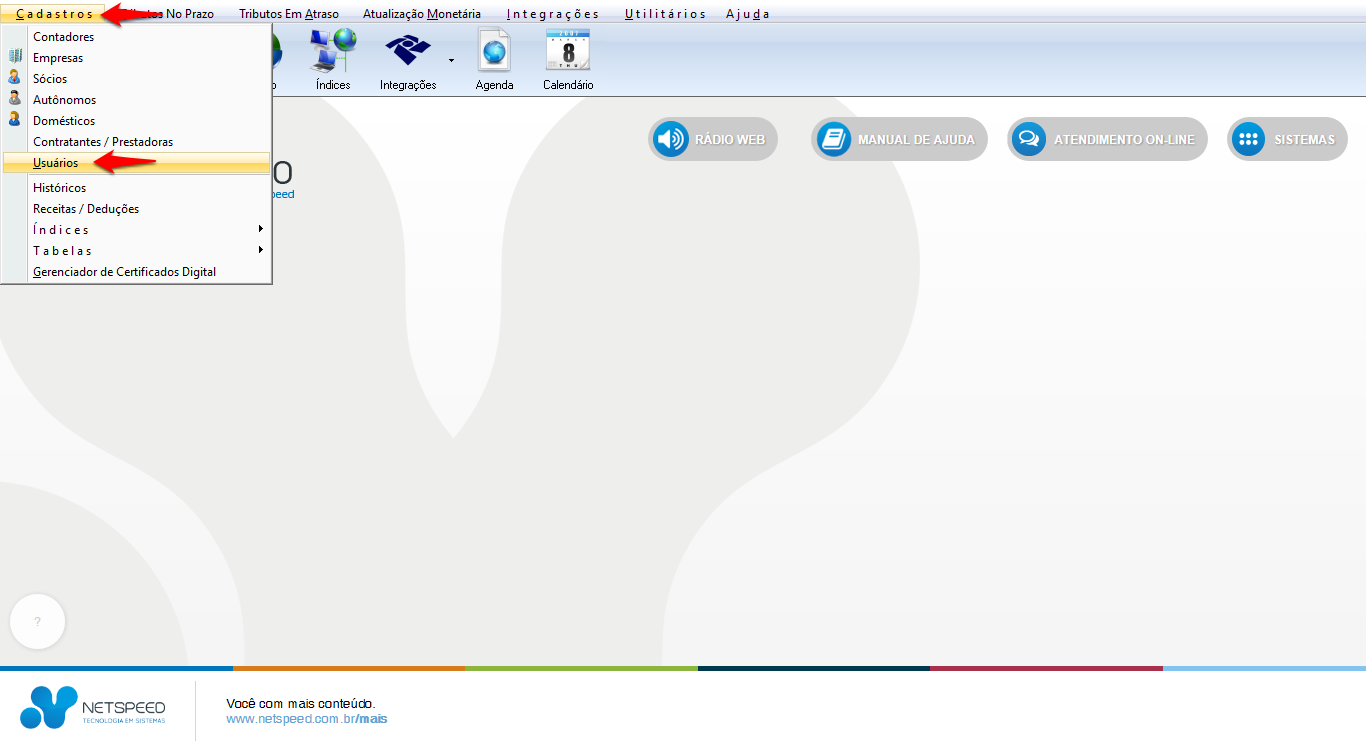 • Será exibido o módulo que lhe permitirá realizar o Cadastro de Usuários.