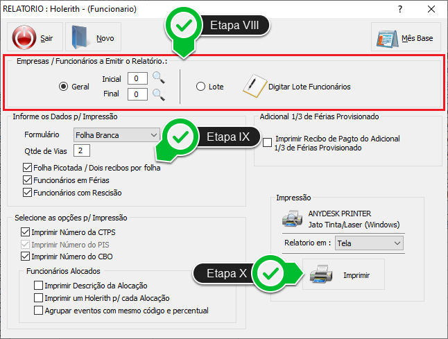 Etapa IX - Configure os dados de Impressão, marcando os campos necessários.