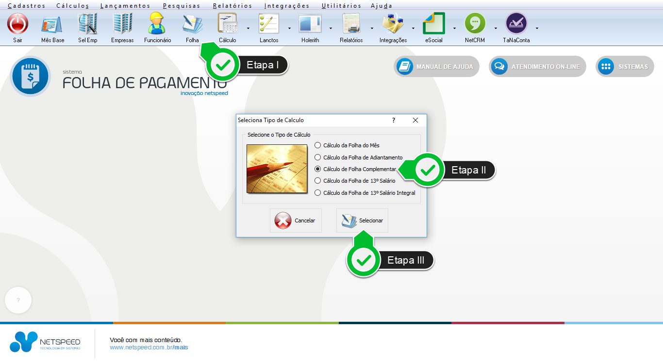 Etapa II - Marque a opção Cálculo de Folha Complementar.