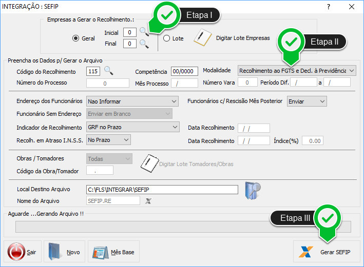 Etapa III - Clique na opção Gerar SEFIP.
