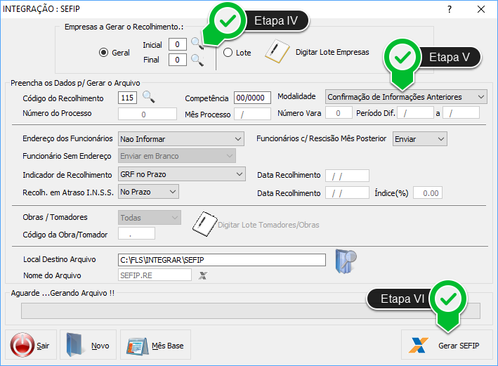Etapa VI - Clique na opção Gerar SEFIP.