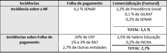 Por outro lado, optando pela comercialização sobre a produção rural, haverá o recolhimento de 1,5% sobre o valor bruto da Nota fiscal.