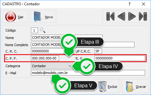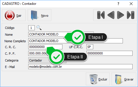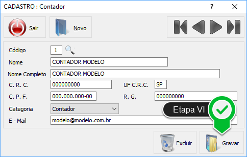 - Será exibido o módulo que lhe permitirá realizar o Cadastro de Contadores.