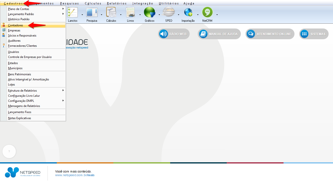 - Acesse o menu Cadastros, opção Contadores.