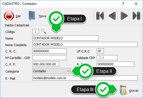 - Será exibido o módulo que lhe permitirá realizar o Cadastro de Contadores.