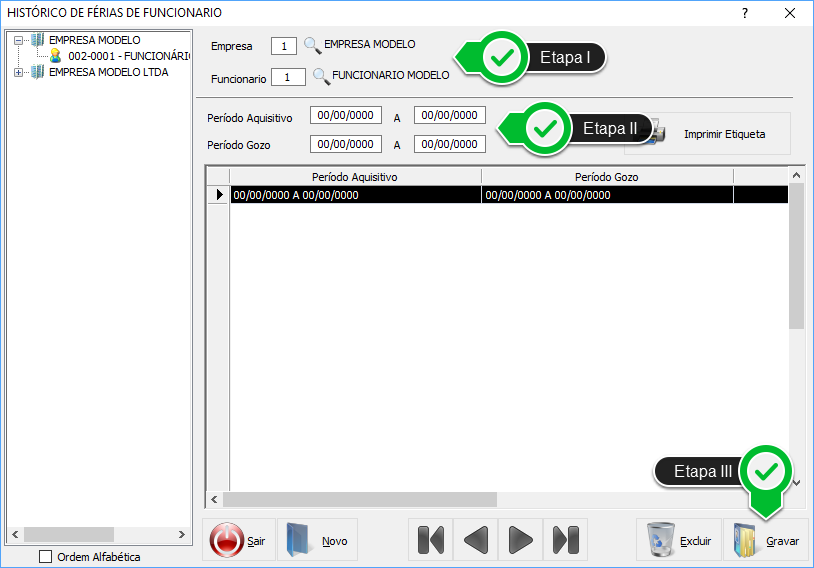 Etapa I - Insira o código da Empresa e o código do Funcionário.