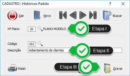 - Após essa ação, será apresentado o módulo que permitirá a você realizar o cadastro de histórico padrão.
