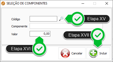 Etapa XV - Insira o Código do Componente ou clique na lupa à frente para buscá-lo.