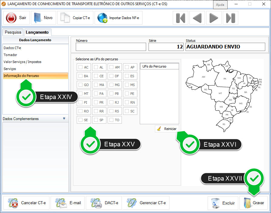 Etapa XXV - Clique sobre as UFs do Percurso para marcá-las.