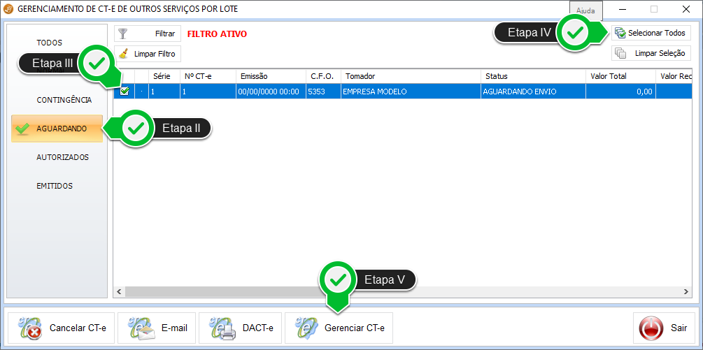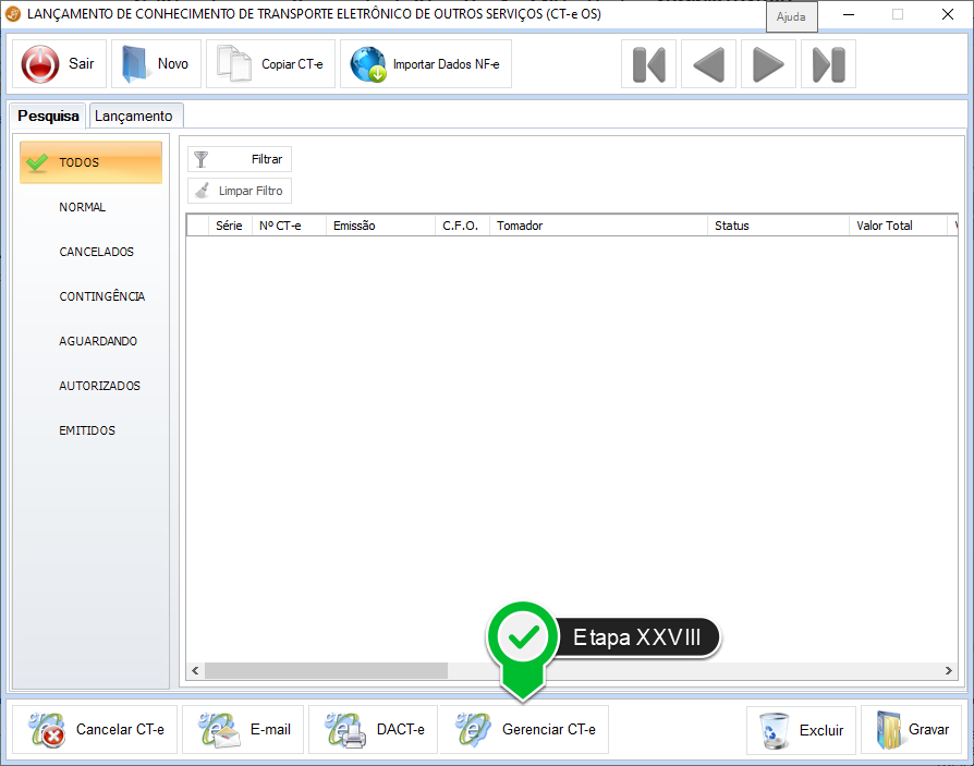 Etapa XXVIII - Clique sobre esta opção para Gerenciar o CT-e.