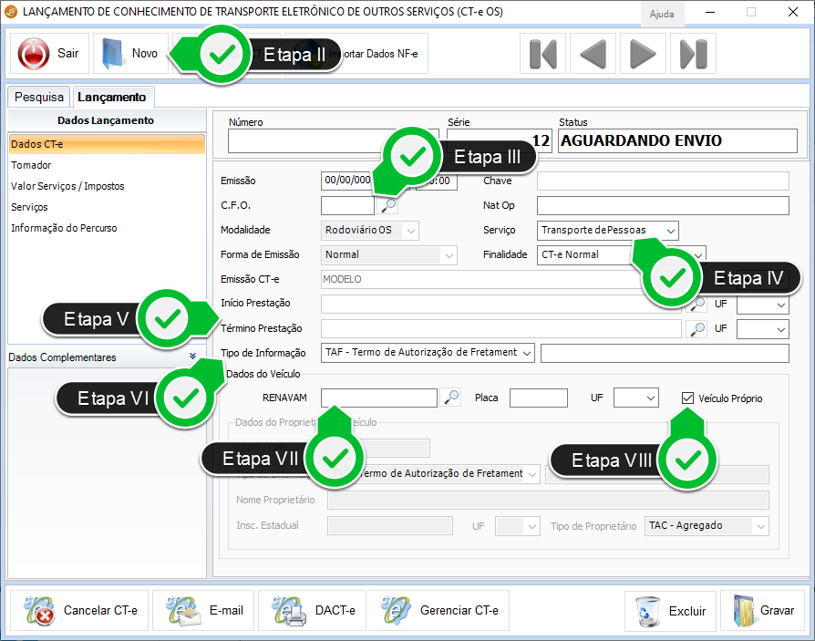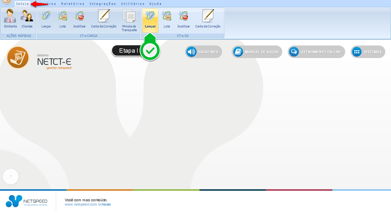 Etapa I - Clique sobre a opção Lançar, do grupo CT-e OS.
