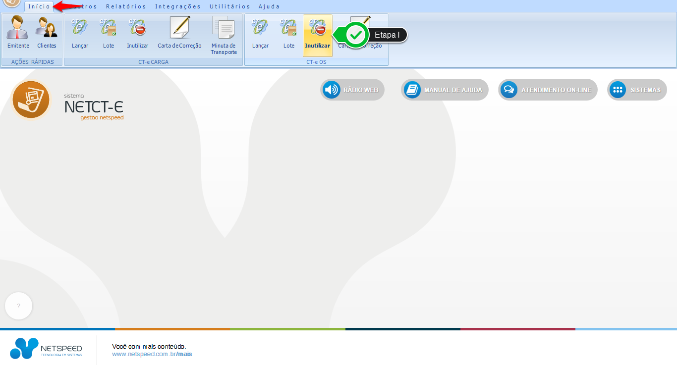 Etapa I - Clique sobre a opção Inutilizar, no grupo CT-e OS.