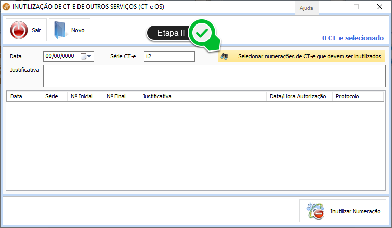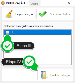 Etapa II - Clique sobre esta opção para Selecionar as numerações que serão inutilizadas.