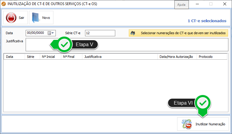- Será exibido o módulo que lhe permitirá Inutilizar os números necessários.