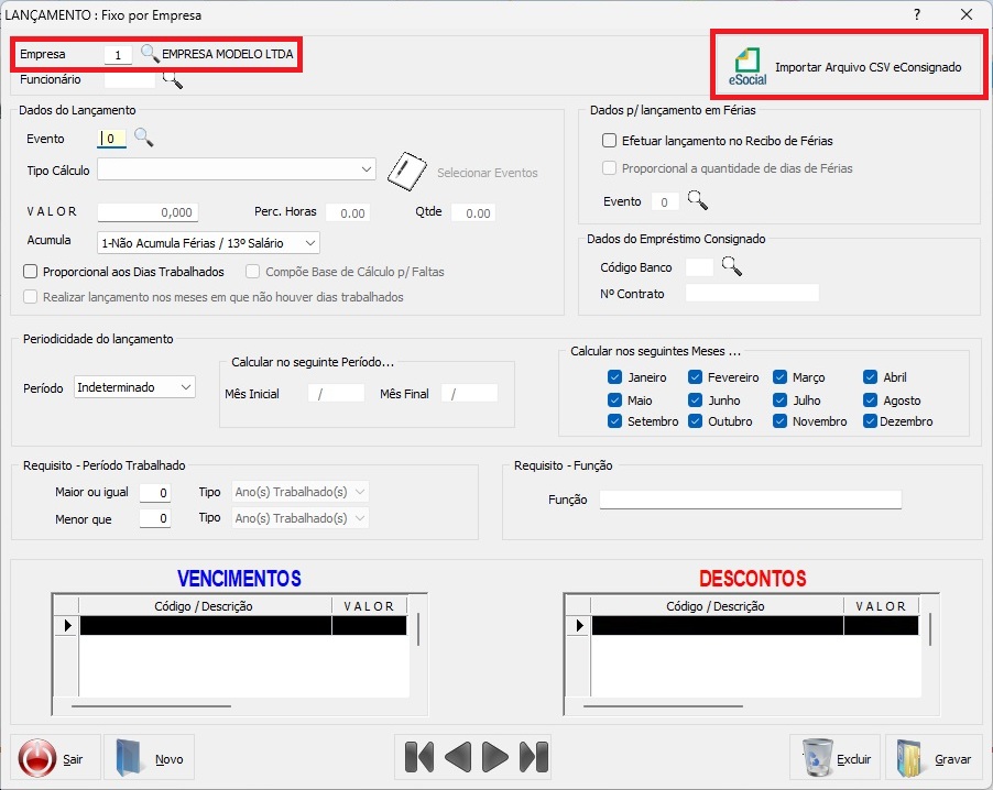 - Novamente no sistema Folha, acesse Lançamentos, Lançamentos Fixos, Empresas.