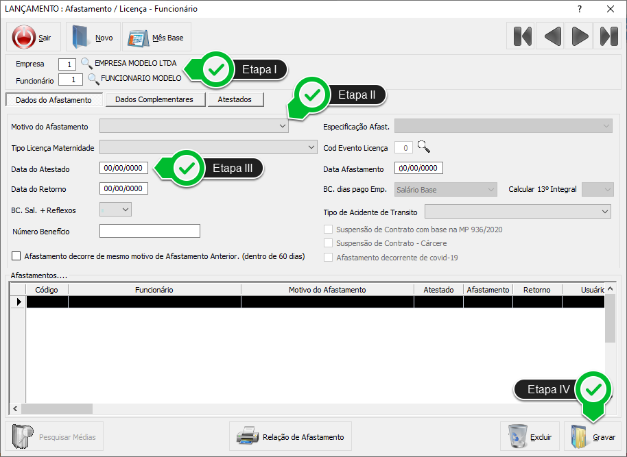 Etapa II - Selecione o Motivo do Afastamento.