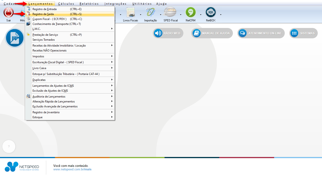 Lançamento do Registro de Saída: