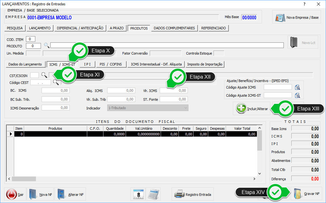 Etapa XII - Neste quadro inclua a Base de Cálculo e o Valor do ICMS-ST.