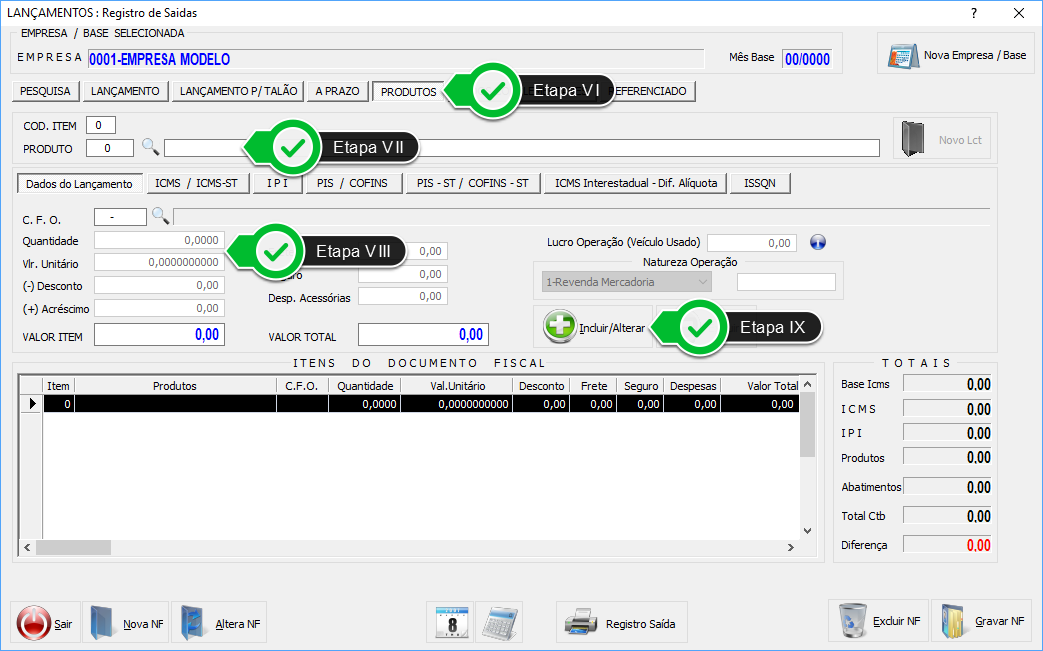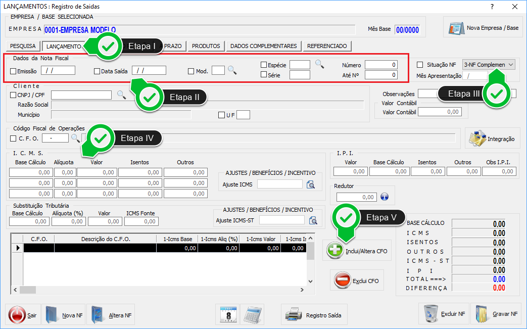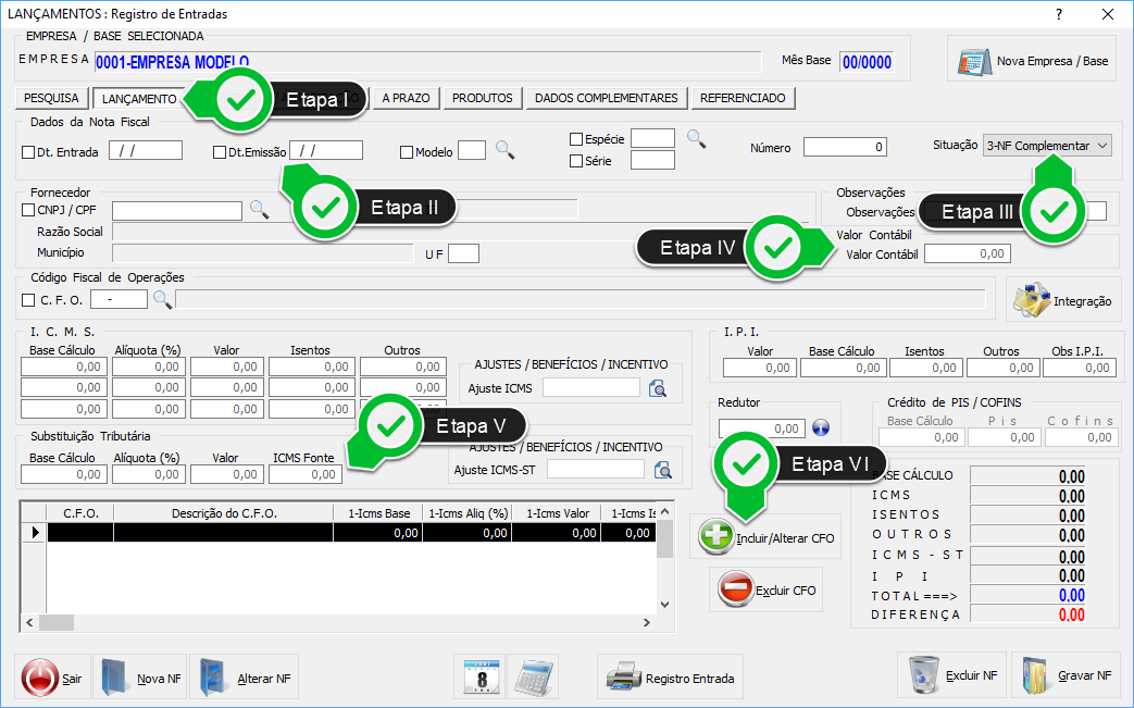 Obs.: o Valor Contábil, logo abaixo da Etapa III, permanecerá zerado.