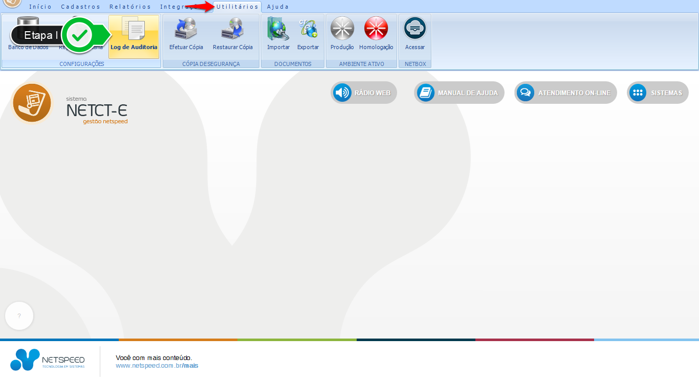Etapa I - Clique sobre a opção Log de Auditoria, no grupo CONFIGURAÇÕES.