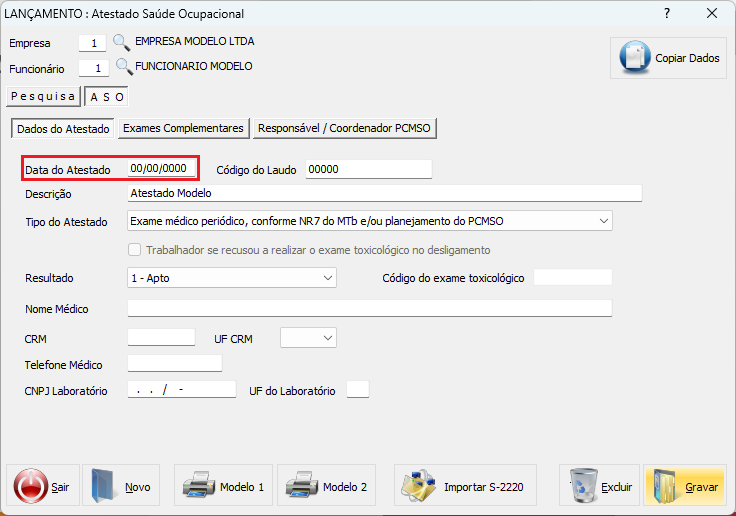 Etapa I - Informe a data correta, conforme consta no atestado, grave e reenvie o evento.
