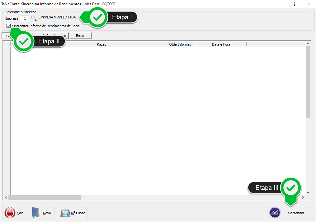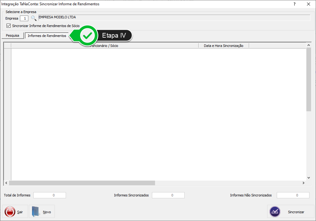 Etapa II - Marque este campo para incluir os Informes de Rendimentos de Sócios na sincronização.