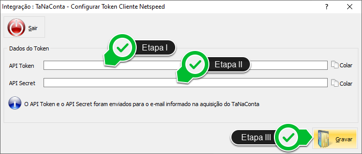 Etapa I - Insira o código do API Token, que recebeu no seu e-mail.