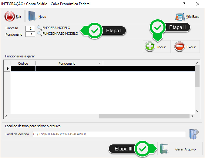 - Será exibido o módulo que lhe permitirá realizar a inclusão dos funcionários para gerar o arquivo.
