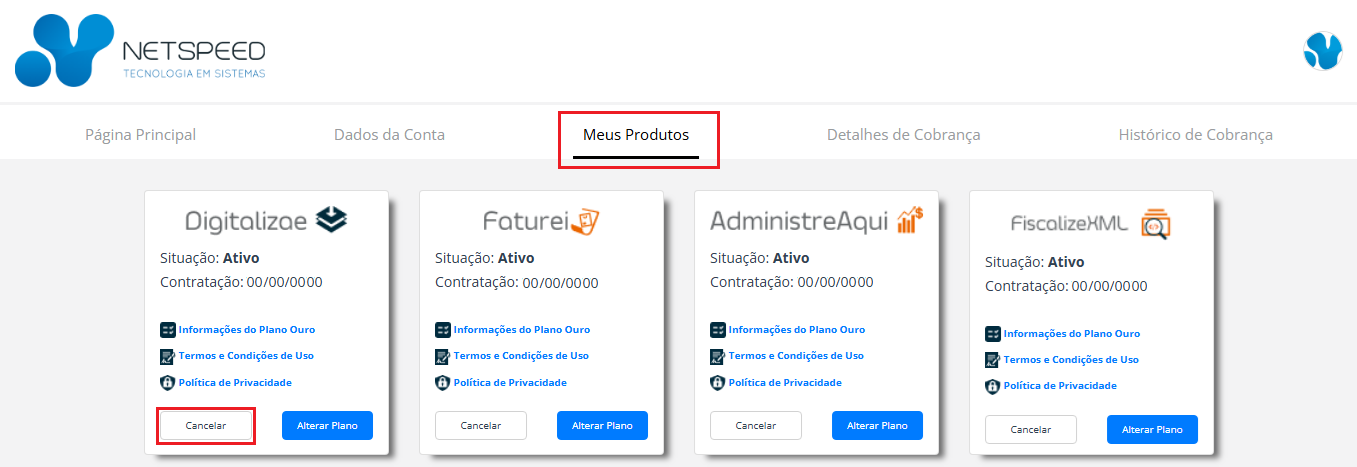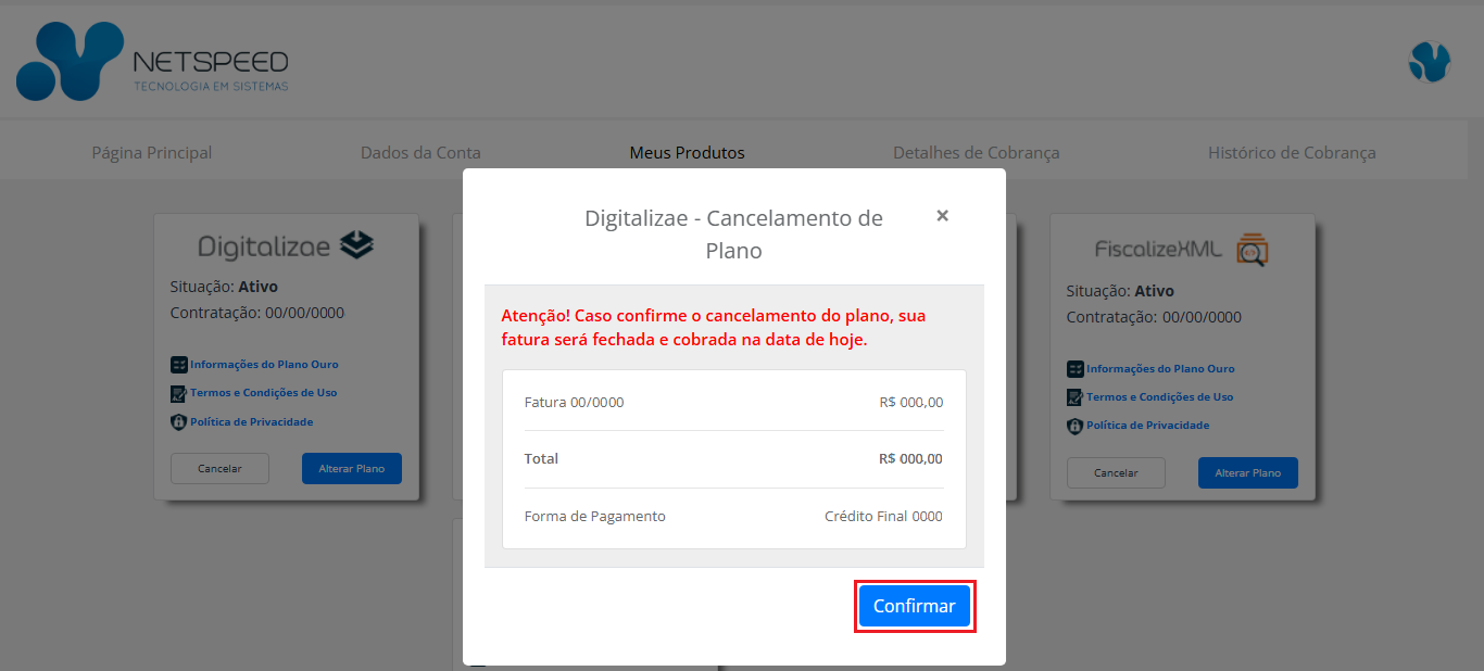 Importante! A fatura é fechada proporcionalmente ao tempo de uso (último mês) de acordo com o dia que o cancelamento for efetuado.