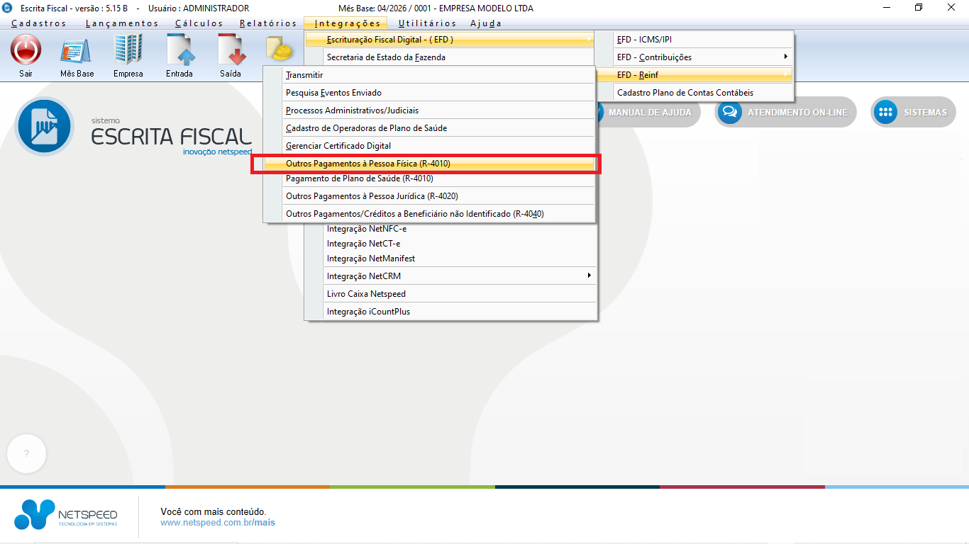 O evento R-4010 serve para declarar pagamentos ou créditos a beneficiários pessoas físicas. Este manual foca na distribuição de lucros, detalhando as regras atuais, as mudanças para 2026 e como realizar o lançamento correto no sistema NetSpeed.