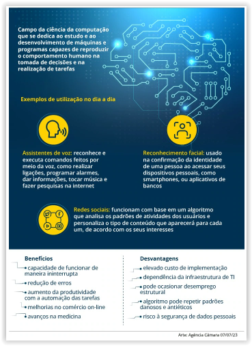 A Câmara dos Deputados vai analisar um projeto já aprovado no Senado (PL 2338/23) que regulamenta o uso da inteligência artificial no Brasil.