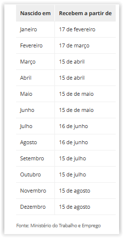 O banco de recebimento, data e os valores, inclusive de anos anteriores, estão disponíveis para consulta no aplicativo Carteira de Trabalho Digital e no portal gov.br.